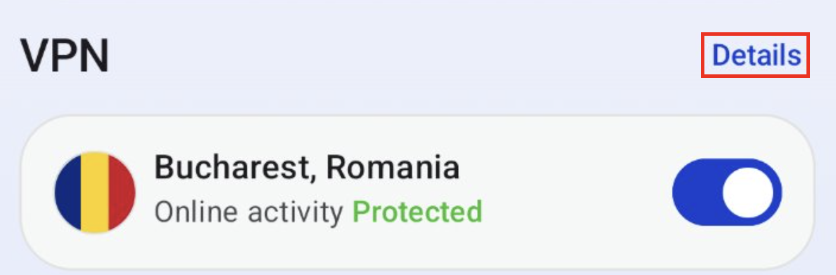 - On the Mobile Security dashboard, under VPN, tap Details.