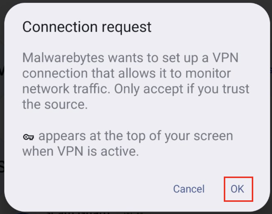 To turn on the VPN feature, you'll need a subscription that includes VPN. You can upgrade your subscription from the Mobile Security app or your Malwarebytes account.