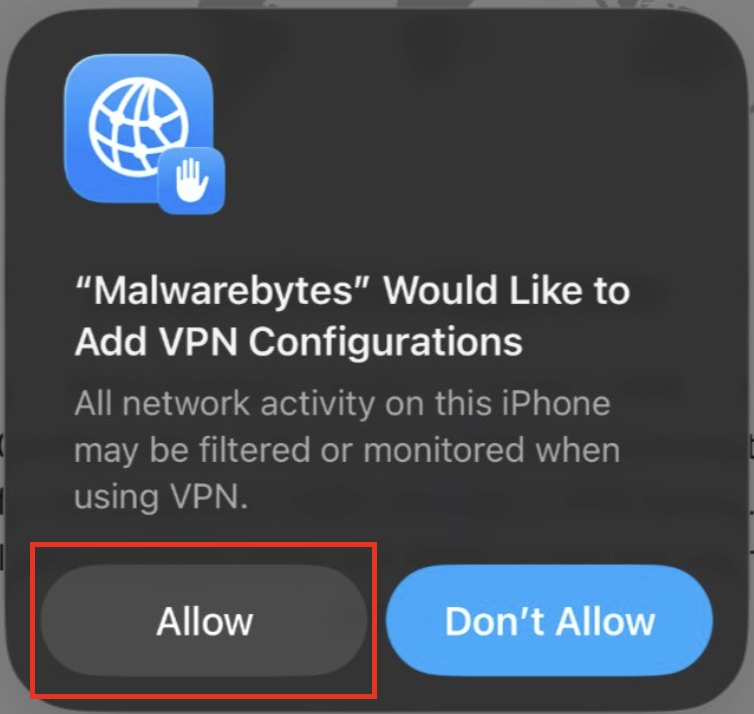 - Enter your iPhone passcode to allow Mobile Security to add VPN Configurations.